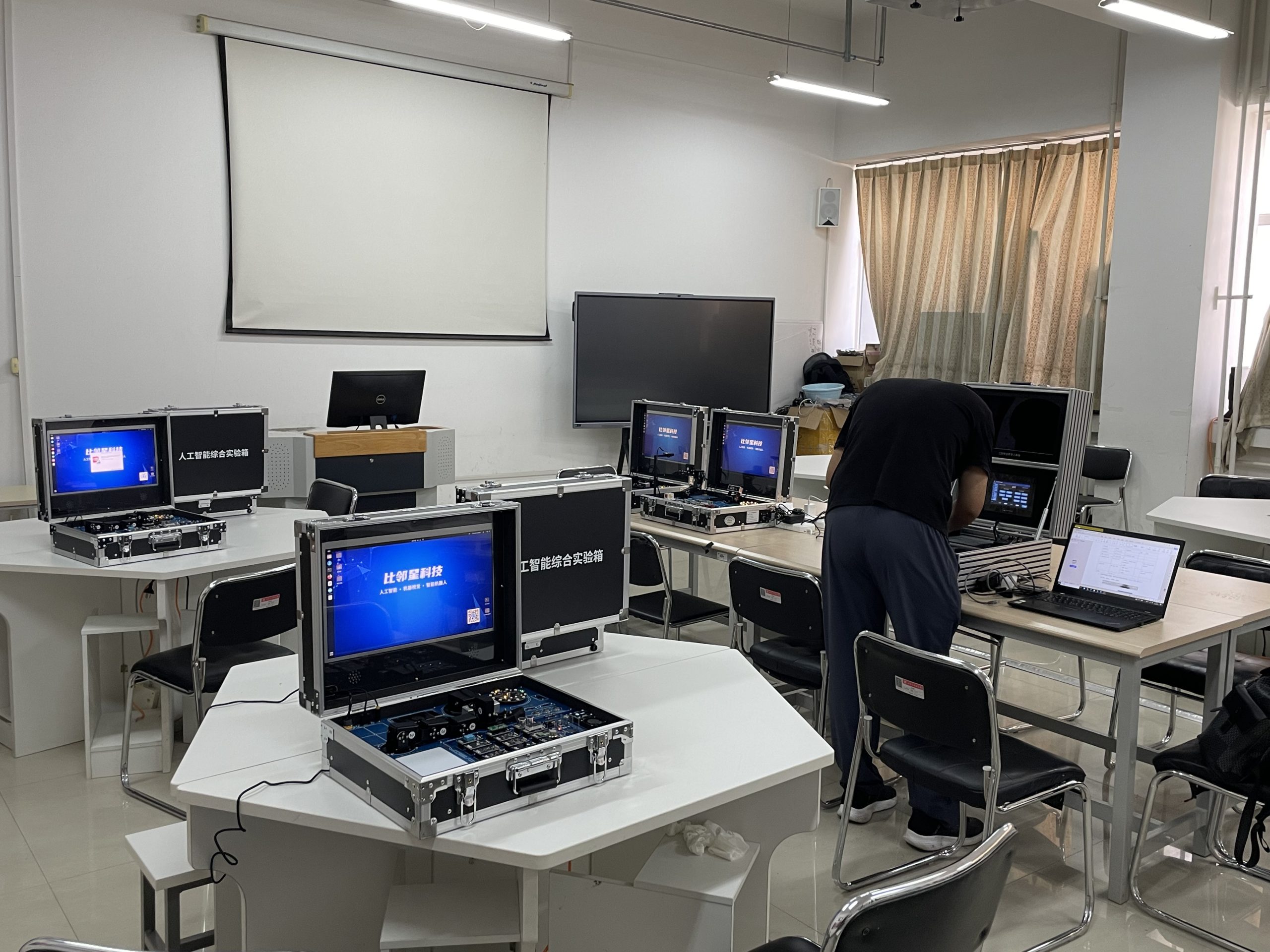 The new lab setup now hosts interactive AI projects where students can deploy models, test robotic interactions, and perform data analysis with real-time feedback.