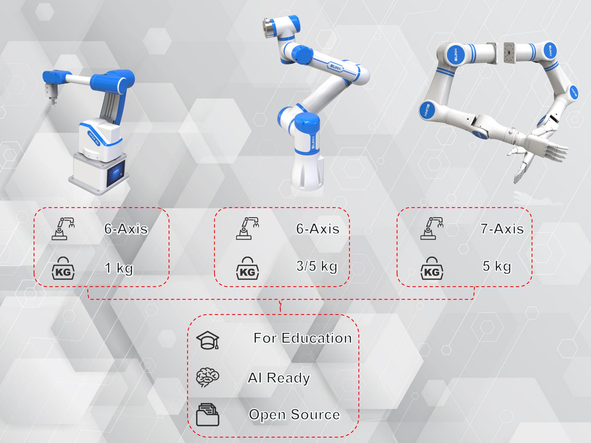 - Lack of integration with AI and applications. In today’s world, robotics education is not just about the arm itself — it’s about how the arm connects with vision systems, AI models, and industrial applications. But most commercial products stopped at just “the robot arm.”